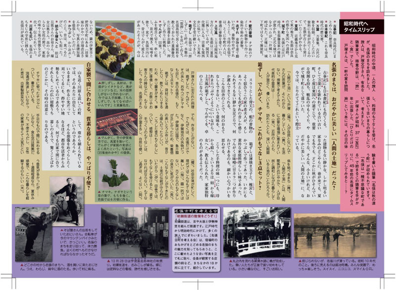 えーっと、チラシの左肩にみえる写真は、地域の名門三重県立名張高等学校がことし1月に発行した「名張まちなかナビ」、あの表紙に使用された写真とそっくりなのであるが、まあそんなことはどうだってかまわない。