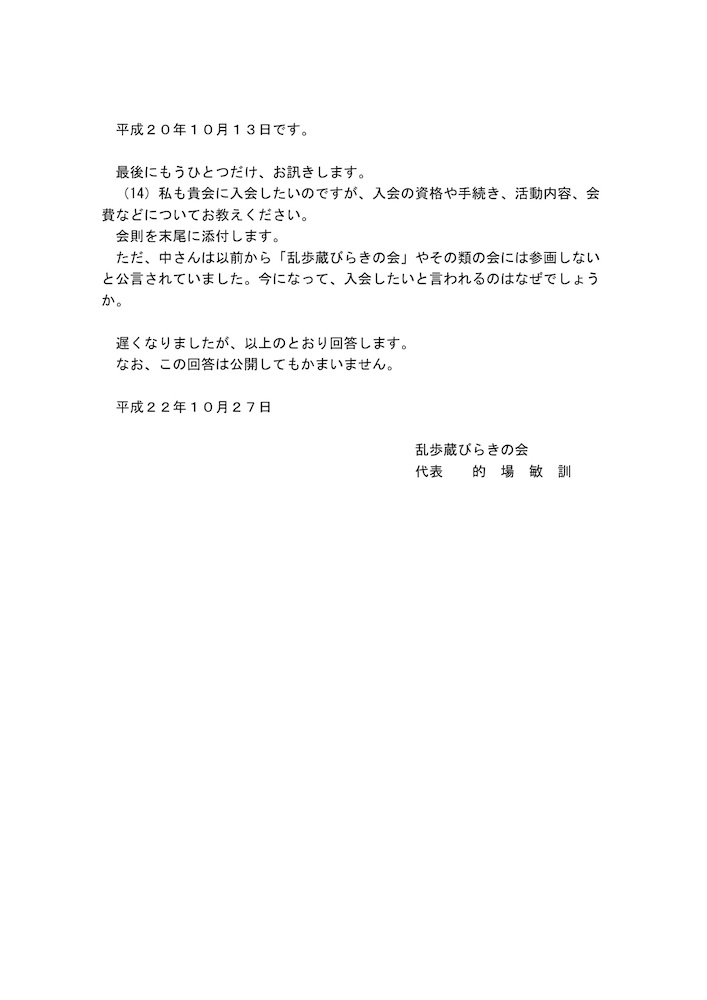で、乱歩蔵びらきの会から頂戴した回答には、反問というか、逆質問というか、要するにおれへの質問もお書きいただいてあるので、それには当然、お答えしなければならない。