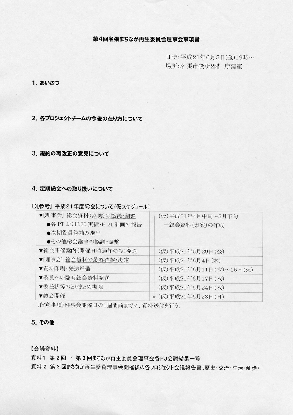 さて、理事会である。事項書がこれ。