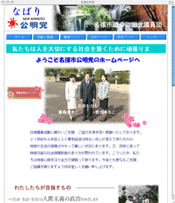 まったくわけがわからない。わけがわからないといえば、議員名簿のページでは、公明党所属の先生がたのホームページの欄がブランクになっている。ウェブサイト名張人外境の過去ログを調べてみたら、おととし7月の時点では、こんなサイトがあったのである。