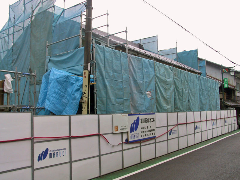 きのう、名張市役所に立ち寄って確認したところ、改修は来年2月末完工の予定だそうである。屋根をふき替えたり、外壁を新しくしたり、耐震構造にしたり、母屋の外に厨房をつくったり、とても立派な便所も新設されて、母屋と渡り廊下で結ばれるらしい。