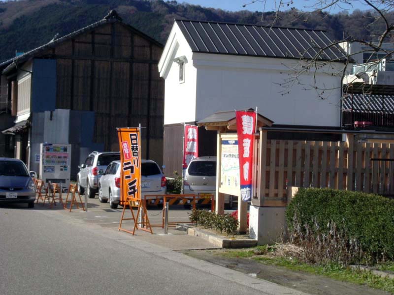 ごらんのとおり、「日替りランチ」だの、「農産物」だの、そういった文字が大きく染め抜かれている。してみると、オープンから半年あまりが経過して、この無駄に立派な公衆便所つきの名張地区第二公民館with小判鮫においては、既定方針の食堂化路線に加え、道の駅化路線という新機軸も打ち出されてきた、ということであろうか。名張市が、ただの思いつきで細川邸の整備に着手し、なにも考えることなくなりゆきにまかせてきた結果が、なんとこれなのである、ということであろうか。どうなと勝手にするがよい。