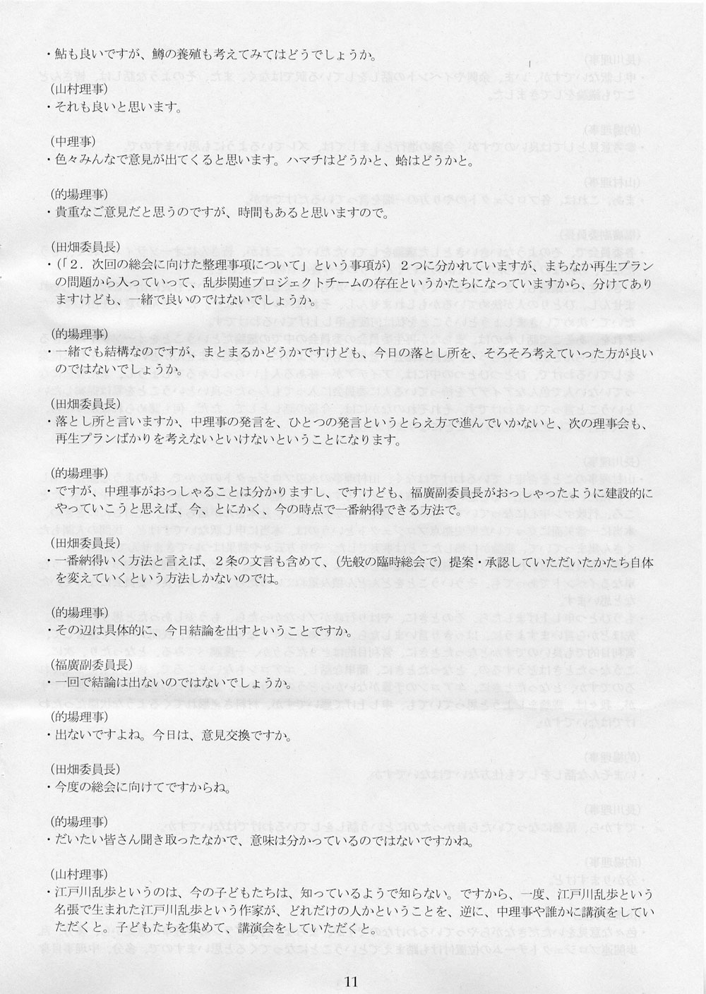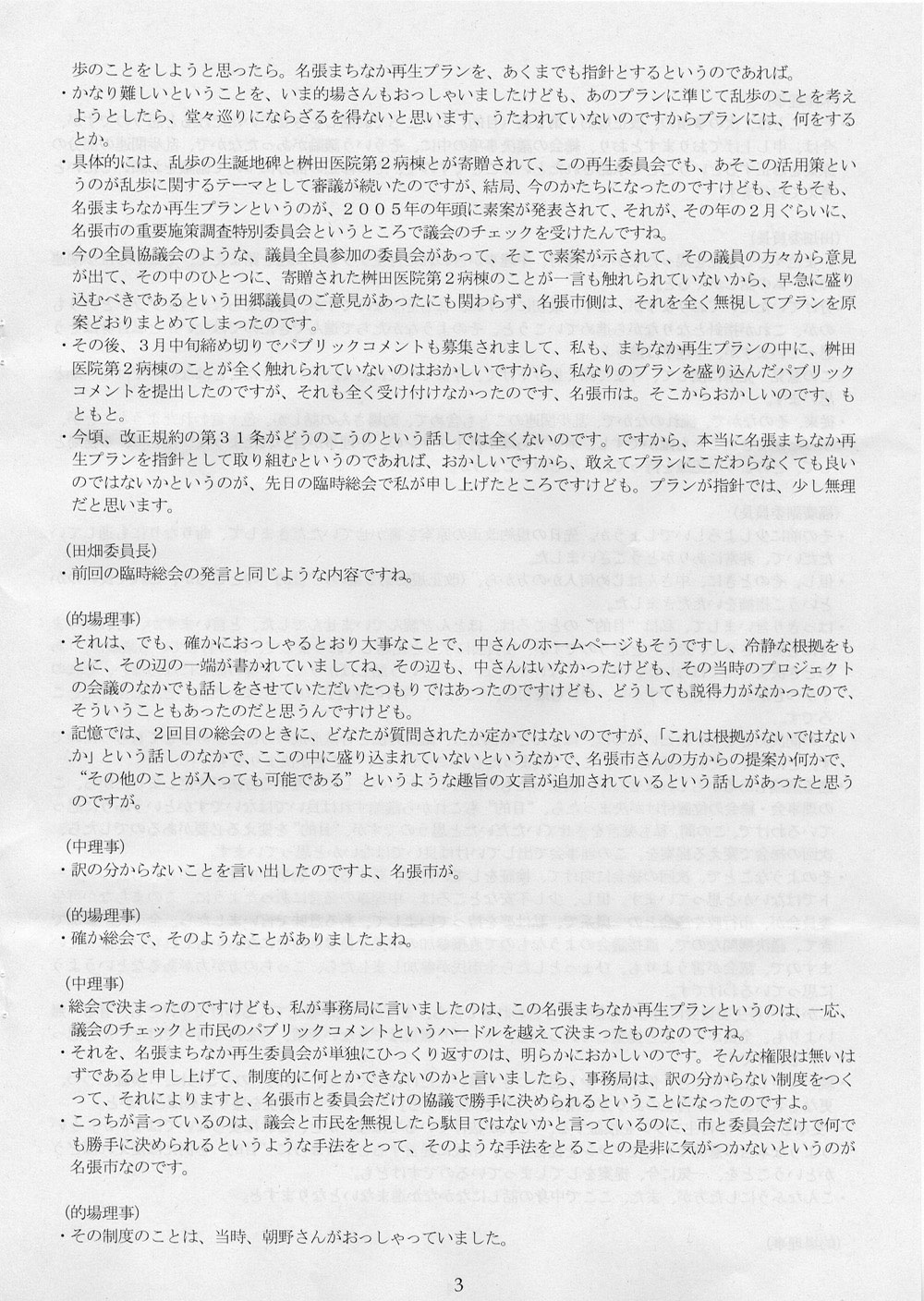 議事録は全三十一ページ。うち十五ページまでを掲載しただけであるが、きょうはこれくらいにしておいてあげよう。