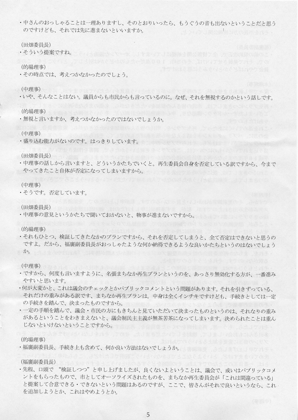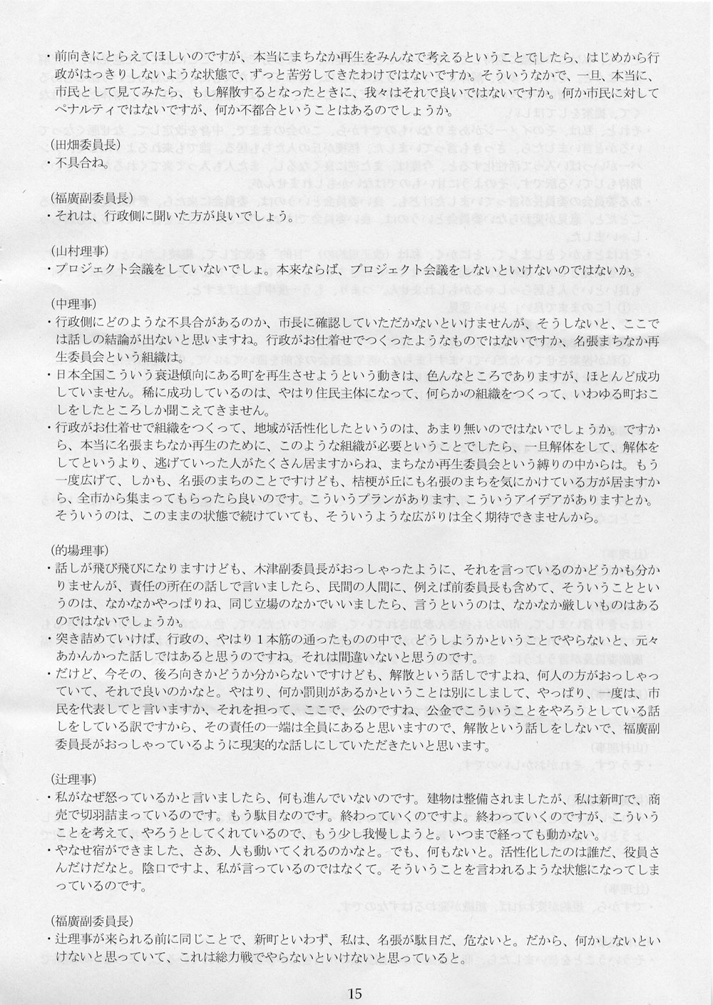 な、わかったか。広く市民の方に委員としてお入りいただく、とかそんなこといってる場合ではないのである。存続か、解散か。そこまで来ておる。名張まちなか再生委員会、いまやぶっ壊れるかどうかの瀬戸際まで来ておるのである。