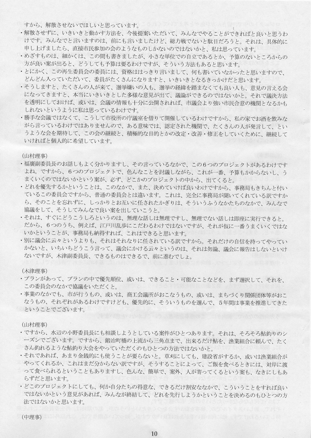 ・鮎も良いですが、鱒の養殖も考えてみてはどうでしょうか。 (山村理事) ・それも良いと思います。 (中理事) ・色々みんなで意見が出てくると思います。ハマチはどうかと、蛤はどうかと。 |
