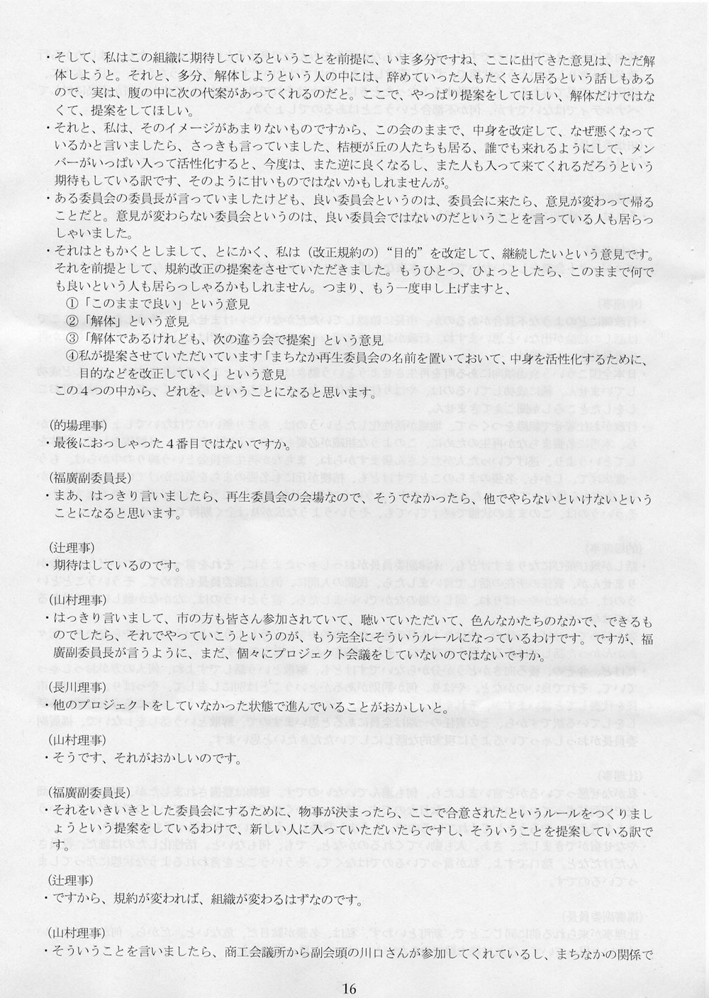 「将来の議論をするのでしたら、まちなか再生プランを指針にするのはやめるべきなのです。それを言っているのですよ。まちなか再生プランを指針にして、あれが出来たのですから、いままでの流れと言いますか。結局、指針になっていないでしょ。歴史資料館になっていないでしょ」「私の思いとかではなくて、物事を決めていく手続きが、あまりにもずさんだというだけの話です」