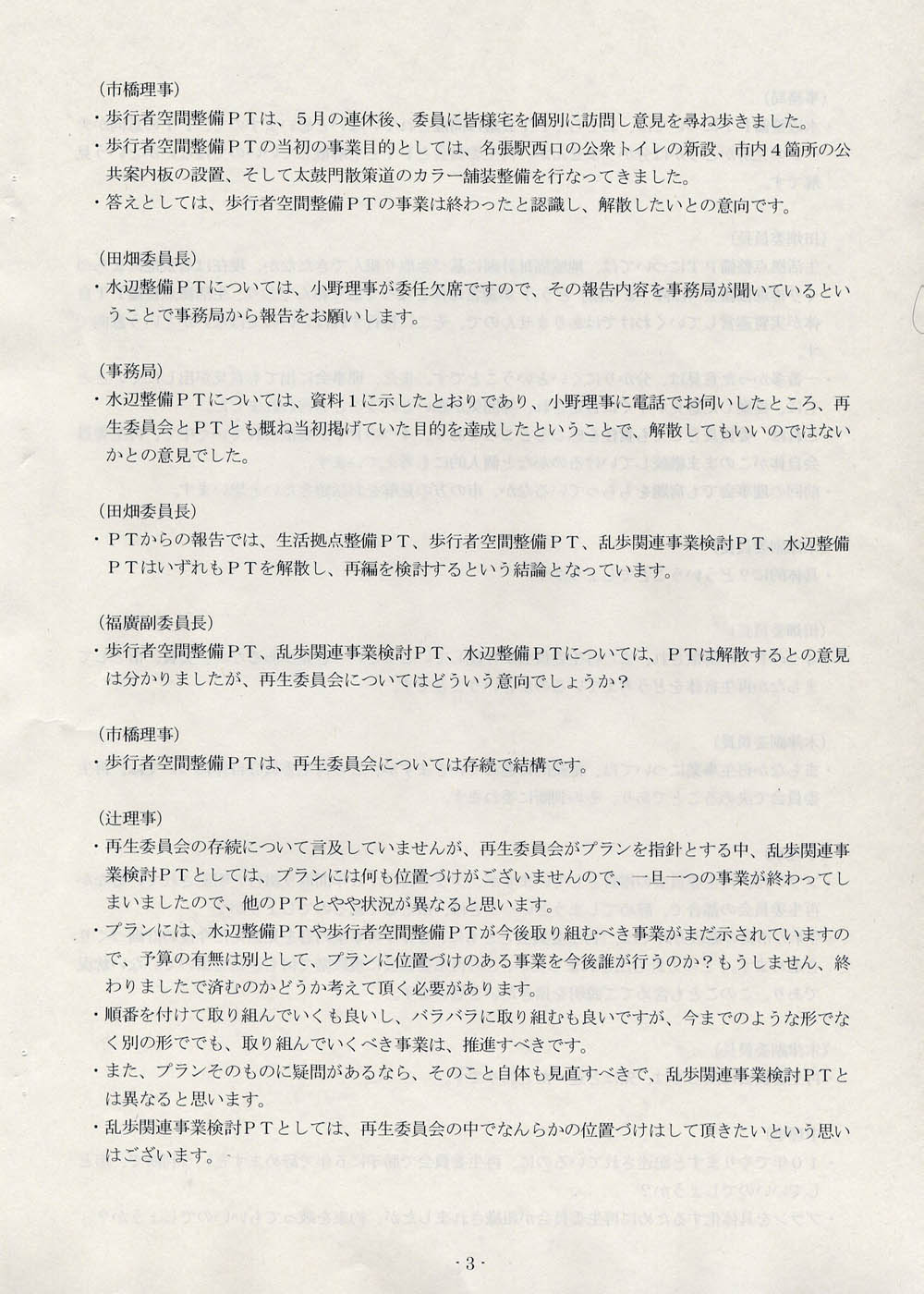 「まちなか再生事業については、継続的に進めていきますが、この再生委員会自体については、再生委員会で決めることであり、その判断に委ねます」