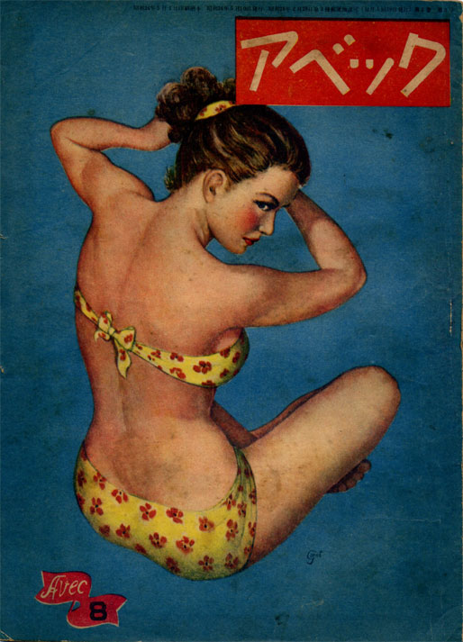 探偵小説研究家の、とお呼びしていいのかどうかよくわからないのだが、とにかく在野で横溝正史あたりの研究をこつこつとつづけていらっしゃる黒田明さんには、昨年の11月、神戸で催された正史の生誕地碑建立四周年記念イベントではじめてお会いした。その黒田さんもトーク&ディスカッションに来てくださって、おみやげまで頂戴した。昭和24・1949年に出た「アベック」という雑誌で、乱歩の関連文献が掲載されている。これである。